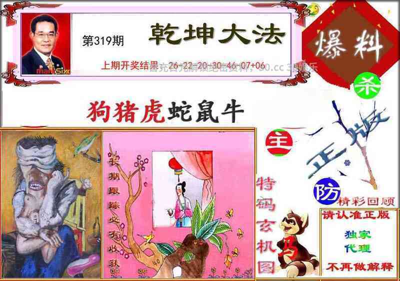| 320期:七肖 | 猴猪鸡狗虎龙牛 | 开:發00 |